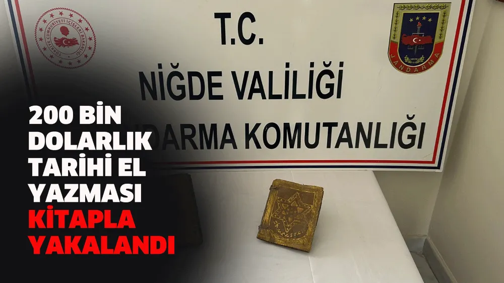 Niğde İl Jandarma Komutanlığı ekipleri Niğde’nin Bor ilçesine bağlı Kemerhisar Beldesinde kamu görevlisi olduğu belirlenen 2 şüpheli şahsın, piyasa değerinin yaklaşık 200 bin dolar olduğu belirlenen altın yazmalı kitap satacağı bilgisi üzerine harekete geçti. Ekipler şüpheli şahısların araçlarında yaptıkları aramada, Roma Dönemi’ne ait olduğu, ceylan derisi üzerine yazılmış altın yazmalı kitap ele geçirildi. Tarihi eserin piyasa değerinin yaklaşık 200 bin doları olduğu belirlendi. 2 kamu görevlisi şahıs hakkında adli işlem başlatıldı.