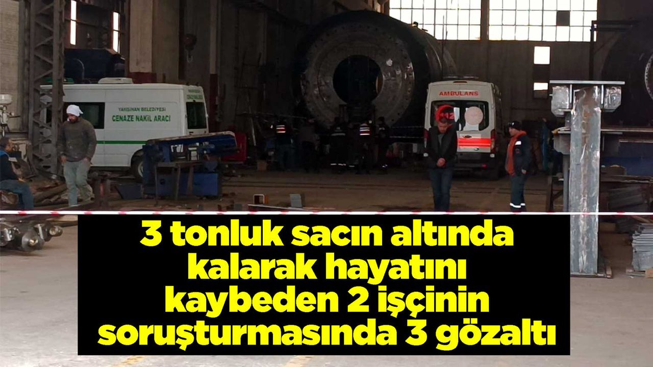 Dün sabah saatlerinde Yahşihan Organize Sanayi Bölgesi'nde endüstriyel ekipman üretim tesisinde meydana gelen olayda, kaynak yapmak için hava kazanının içine giren işçiler Mutlu Atay ve Tekin Omay, 3 ton ağırlığındaki sac levhanın kayması sonucu levhanın altında kaldı. İş arkadaşlarının ihbarıyla olay yerine sağlık, jandarma ve itfaiye ekipleri sevk edildi. Ekipler, levhanın altında kalan 2 işçinin cansız bedenine ulaştı. Kırıkkale adli Tıp Kurumundaki otopsi işlemleri sonrası işçilerin cenazeleri, bugün öğle namazının ardından kılınan cenaze namazının ardından toprağa verildi.