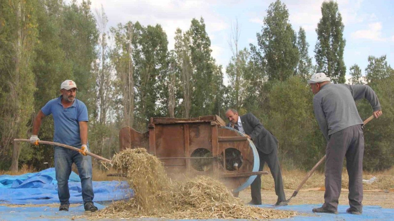 Geleneksel yöntemlerle yılda bir ton mahsul elde ettiklerini söyleyen Enes Dursun Yılmaz, "Fasulye savurmak için kullandığımız bu makine yaklaşık yüz yıllık. Atıl bir şekilde duruyordu. Yaklaşık 8 yıl önce bunu tamir ettik. Kuru fasulye çıkarma işlerinde savurma makinesi olarak kullanıyoruz. Dövülmüş fasulye otlarını denesinden ayırmak için kullanıyoruz. Şuan bu makinelerin yerlerine patos kullanılıyor. Ürün olarak savurma makinesi daha temiz çıkarıyor. Patosta kırma riski oluyor, fasulyeleri kırıyor. Bunda kırma sorunu yok, fakat savurma makinesinin bir zorluğu fasulyeyi iyice harman edip, dövüp, tanesi ayrıldıktan sonra ancak savrulabiliyor ama patosta öyle bir şey yok. Patosta direkt makineye atıyorsun tanesini ayıyor. Bunda önce dövme işleminden geçiriyoruz, ondan sonra bundan savuruyoruz, tanesini ayırıyoruz" dedi.