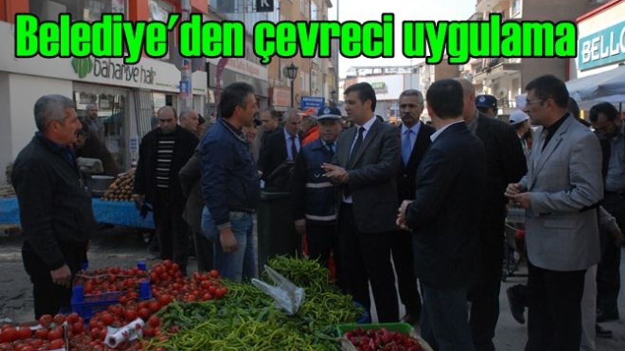 Pazar yerine giden Belediye Başkan Yardımcısı Halil Danacı tarafından pazarcı esnafına siyah poşet dağıtıldı. Danacı uygulama konusunda Pazar esnafını bilgilendirdi. Danacı 'Bundan böyle açık pazarlarda Pazarcılar Odası tarafından da poşet dağıtılacak. Semt pazarlarında pazarın dağılma aşamasında atık ürünler çevre kirliliğine neden oluyordu.Temizlik personeline de çöp toplanması aşamasına sıkıntı oluşturuyordu. Pazarcı esnafı siyah poşetlerle atıkları toplayıp uygun yere taşıyacaklar. Böylece görüntü ve çevre kirliliğinin önüne geçilecek. Atık toplanması da kolaylaşacak' ifadelerini kullandı.