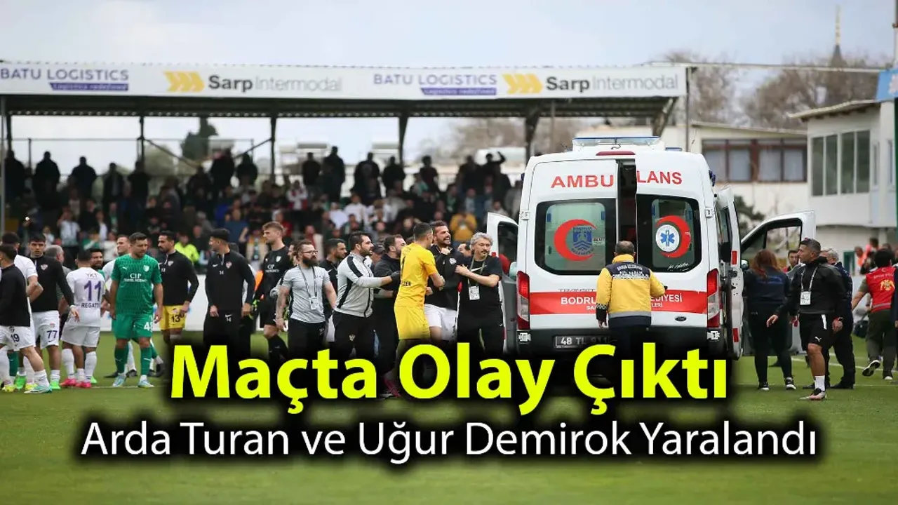 Trendyol 1. Ligi'nde Bodrumspor ile Eyüpspor'u karşı karşıya getiren maçın ilk yarısının son bölümünde olaylar çıktı. Caner Erkin ile Kenan Özer arasındaki pozisyonun ardından Bodrumspor Teknik Direktörü İsmet Taşdemir, itirazlarının ardından kırmızı kart gördü. Ev sahibi takım taraftarları bu duruma tepki gösterirken sahaya yabancı cisimler atıldı. Yabancı maddeler ilk olarak, yedek kulübesinin ön bölümünde yer alan Arda Turan'ın ayağına isabet etti. Bunun ardından Eyüpspor'un yedek oyuncusu Uğur Demirok'un gözüne yabancı bir cisim isabet etti. Uğur Demirok uzun süre yerde kıvranırken konuk takım yedek kulübesi ve oyuncular bu duruma sinirlenip maçın hakemine isyan etti. Daha sonra ayağa kalkan Uğur Demirok, yaralanan gözüne işaret ederek maçın hakemlerine tepkide bulundu. Demirok, taraftarların olduğu bölüme gidip serzenişte bulundu. Takım arkadaşları tarafından güçlükle sakinleştirilen Demirok, daha sonra sahaya gelen ambulansla hastaneye kaldırıldı.