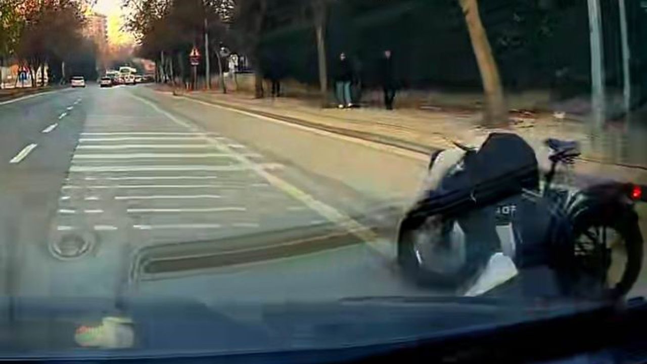 Yaşananlar ise caddede seyir halinde olan bir otomobilin araç kamerasına anbean yaşadı. Görüntüde elleri cebinde giden bisikletlinin dengesini kaybederek yola savrulması, otomobil sürücüsünün hızlı manevrası ile yanından geçmesi, daha sonra bisikletlinin toparlanarak kalkması ve caddeden gelen araçlar görülüyor.