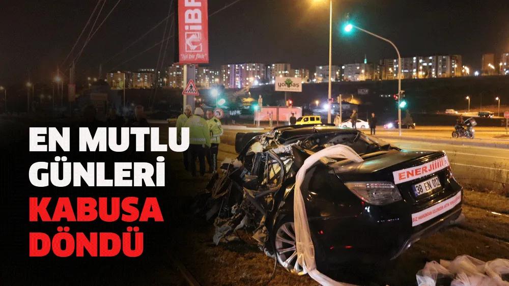 Cırgalan Mahallesi Sivas Bulvarı üzerinde meydana gelen kazada, düğün konvoyunda bulunan E.E idaresindeki 38 EN 012 plakalı BMW marka araç ile H.D. idaresindeki 38 ADZ 597 plakalı Volkswagen marka otomobil çarpıştı. Feci kazada 38 EN 012 plakalı otomobil tramvay yoluna girerken, 38 ADZ 597 plakalı aracın motoru yola fırladı. İhbar üzerine bölgeye polis, sağlık ve itfaiye ekipleri sevk edildi. Araçlarda bulunan 4 kişi yaralanırken, 38 EN 012 plakalı otomobilin sürücüsünün kazanın ardından kaçtığı öğrenildi. Yaralılar ambulanslarla çeşitli hastanelere kaldırılarak tedavi altına alındı. Polis ekipleri de kazanın meydana geldiği yolda güvenlik önlemi alarak inceleme yaptı. Kaza nedeniyle tramvay seferlerinde de bir süre aksama meydana geldi. Kazada hurdaya dönen 38 EN 012 plakalı aracın üzerinde asılı kalan "enerji" ve "biz hakkından gelemedik, artık yenge düşünsün" yazıları da dikkat çekti. Araçlar çekici ile kaldırılırken, kazayla ilgili soruşturma başlatıldı.