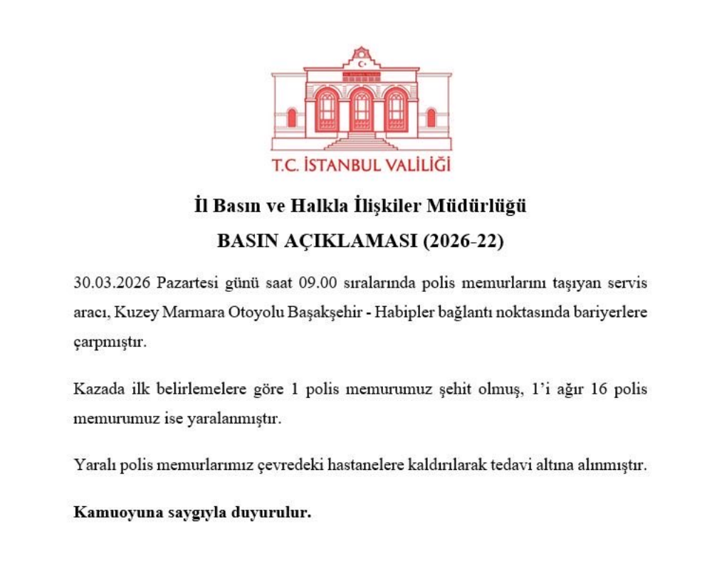 İlk belirlemelere göre kazada 1 polis memuru şehit olurken, 1’i ağır olmak üzere 16 polis memuru yaralandı. Yaralı polis memurlarının çevredeki hastanelere kaldırılarak tedavi altına alındığı bildirildi. Kazanın ardından bölgede sağlık, polis ve itfaiye ekipleri sevk edilirken, olayla ilgili inceleme başlatıldı. Yetkililer, kazanın kesin nedeninin yapılacak teknik değerlendirmelerin ardından netlik kazanacağını belirtti.