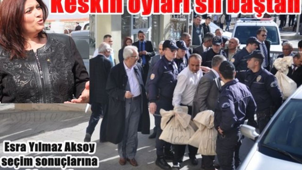Ak Parti Adayı Esra Yılmaz Aksoy'un itiraz dilekçesi vermesi üzerine oyların yeniden sayılmasına karar verildi. Ak parti adayı Aksoy`un geçersiz kabul edilen oyların tümünün kendisine ait olduğunu ve tekrar incelenmesi için İlçe Seçim Kurulu`nda itirazda bulunduğu ifade etti. Aksoy ' İtirazımızı yaptık. Oylar tekrar sayılacak. İptal edilen oyların büyük bir kısmının AK Parti oyu olduğunu biliyoruz.Tekrar incelenmesini istedik' şeklinde konuştu.