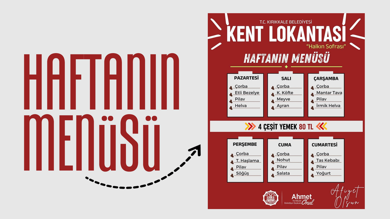 “Halkın Sofrası” sloganıyla hizmet veren lokantada, 4 çeşit yemek 80 TL karşılığında sunulacak.