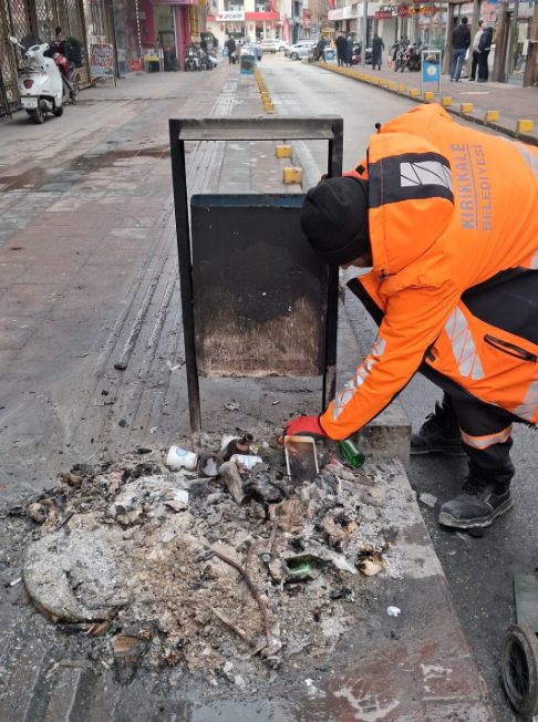 Kırıkkale’de ‘yok artık’ dedirtecek bir olay yaşandı. Kimli belli olmayan kişi veya kişiler, ….. sokak üzerinde bulunan bir çöp kutusunun altında ateş yaktı. Yakılan ateş, çöp kutusunu kullanılmaz hale getirirken, kaldırım üzerinde de kirliliğe neden oldu. Kırıkkale Belediyesi ise adete küle dönmüş olan çöp kutusunun ve kaldırımın temizlendiği anları ve çöp kutusunun son halini ‘Yorumsuz’ sözüyle paylaştı. Kırıkkaleli vatandaşlar ise paylaşımın altına yaptıkları yorumlar ile bu ateşi yakan kişileri eleştirdi.