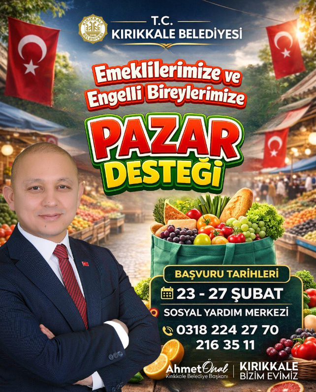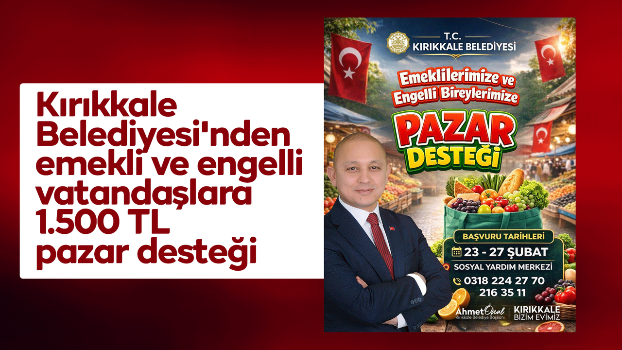 Başkan Önal, sosyal belediyecilik anlayışı doğrultusunda hayata geçirilen uygulamayla hem emeklilerin hem de engelli vatandaşların bütçelerine katkı sunmayı ve günlük yaşamlarını kolaylaştırmayı hedeflediklerini belirtti. Destekten yararlanmak isteyen vatandaşların 23–27 Şubat tarihleri arasında başvuruda bulunabileceği kaydedildi. Başvurular, Kırıkkale Belediyesi Sosyal Yardım Merkezi’nde kabul edilecek. Başvuru şartlarına ilişkin detaylı bilginin ise Sosyal Yardım Merkezi’nden öğrenilebileceği ifade edildi.