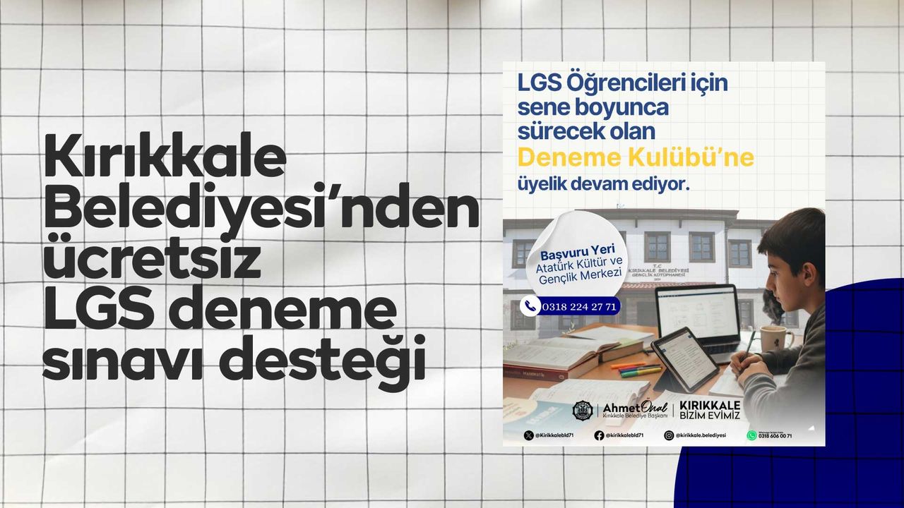 Öğrencilerin Liselere Geçiş Sistemi (LGS) sınavına daha donanımlı şekilde hazırlanabilmesi amacıyla hayata geçirilen uygulama kapsamında, deneme sınavları ücretsiz olarak gerçekleştiriliyor. Belediye yetkilileri, her öğrencinin eşit imkânlarla sınavlara hazırlanabilmesini hedeflediklerini belirterek, eğitim alanındaki destekleyici projelerin kararlılıkla devam edeceğini vurguladı. Ücretsiz deneme sınav kulübüne başvurular, Atatürk Kültür ve Gençlik Merkezi üzerinden yapılabiliyor.