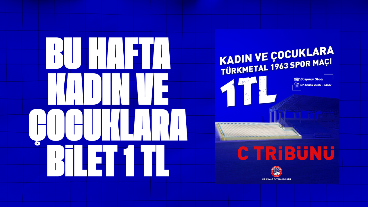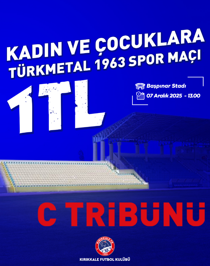 TFF 3. Lig’de mücadele eden Kırıkkale Futbol Kulübü, ligin 12. haftasında Türk Metal 1963 Spor’u konuk edecek. Maç, 7 Aralık Pazar günü saat 13.00’te Kırıkkale Başpınar Stadı’nda oynanacak. Öte yandan Kırıkkale Futbol Kulübü, kadın ve çocuklar için özel bir kampanyaya imza attı. Kulüpten yapılan açıklamada, “Kadınlara ve çocuklara özel, Kırıkkale FK – Türk Metal 1963 maçında C Tribünü sadece 1 TL!” ifadeleri kullanıldı.