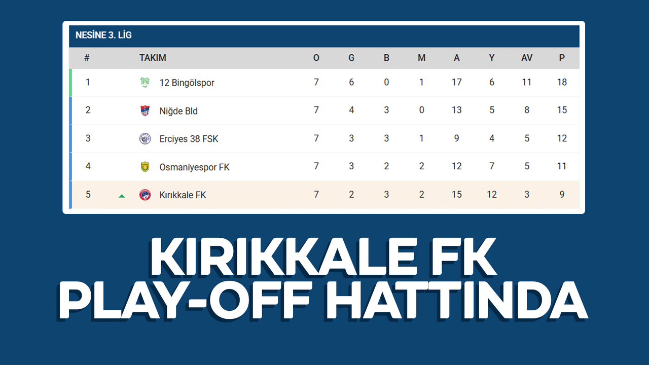 Kırıkkale Futbol Kulübü, 2025-2026 Sezonunun ilk 7 haftasını geride bıraktı. Kırıkkale temsilcisi, 7 maçta 2 galibiyet, 3 beraberlik ve 2 mağlubiyet elde etti. 7 maçta 9 puan toplayan Kırıkkale FK, 15 gol atma başarısı gösterirken, kalesinde 12 gol gördü. Kırıkkale FK, ligde en çok gol yiyen 2 takım olurken, yine ligde en çok gol atan ikinci takım oldu.