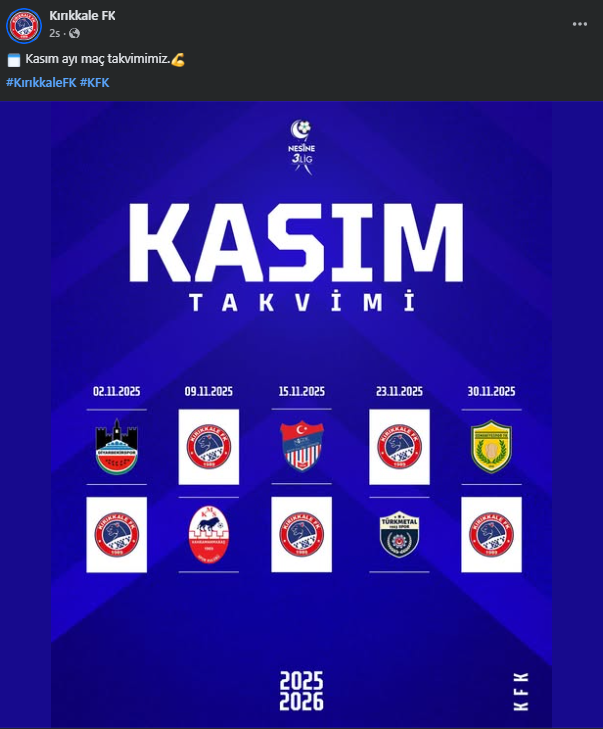 Kırıkkale temsilcisi, Kasım ayında zorlu rakiplerle karşı karşıya gelecek. Kırıkkale FK, ligde üst sıraları hedeflerken Kasım ayındaki maçlardan alacağı sonuçlarla çıkışını sürdürmeyi amaçlıyor.