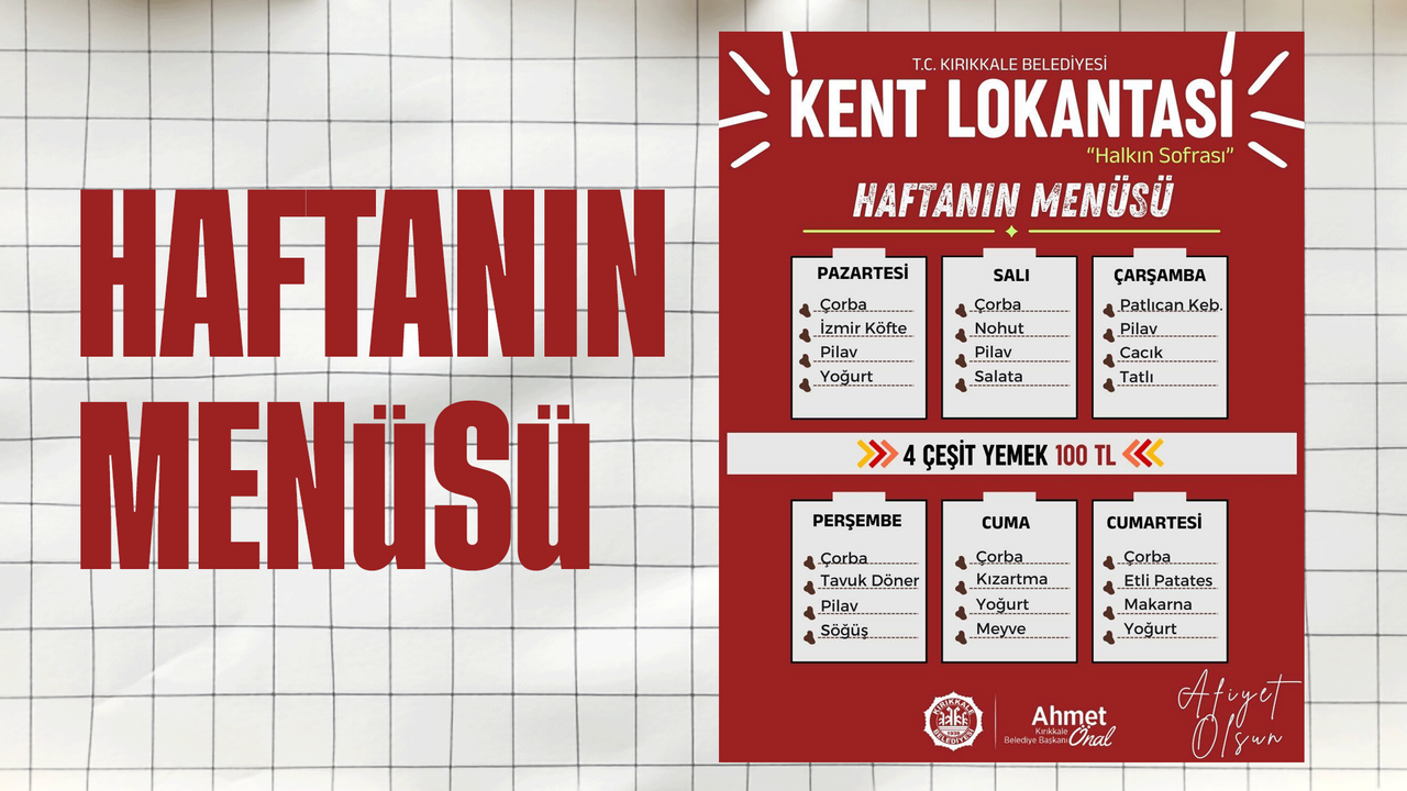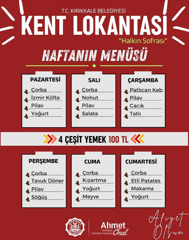 Hafta boyunca sunulacak menüler şu şekilde: