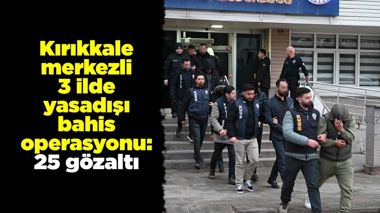 İl Emniyet Müdürlüğü Siber Suçlarla Mücadele Şubesi ekipleri, Kırıkkale Cumhuriyet Başsavcılığı koordinesinde "7258 sayılı futbol ve diğer bahis müsabakalarında bahis ve şans oyunlarının düzenlenmesi hakkında kanuna muhalefet" suçu kapsamında 18 aydır yürütülen planlı soruşturma çerçevesinde Kırıkkale merkezli İstanbul ve Ankara'da belirlenen adreslere eş zamanlı operasyon düzenledi. Operasyonda Kırıkkale'de 22, Ankara'da 2, İstanbul'da ise 1 olmak üzere toplam 25 şüpheli gözaltına alındı.