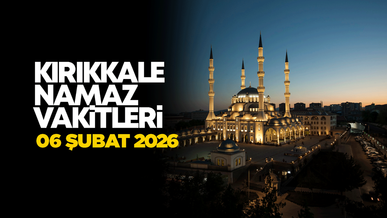 Kırıkkale’de 06 Şubat 2026 (bugün) namaz vakitleri imsak 06.17, Güneş 07.42, Öğle 13.07, İkindi 15.53, Akşam 18.18, Yatsı 19.38 olacak.