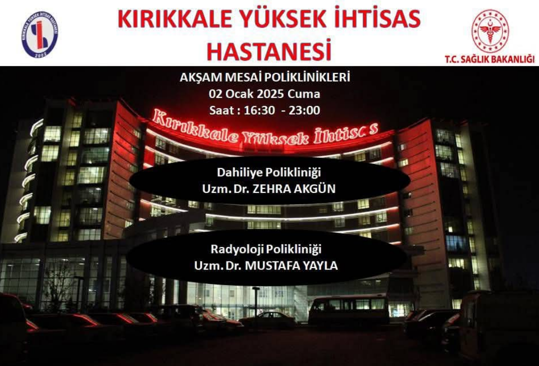Akşam mesaisinde görev yapacak poliklinikler ve hekimler şu şekilde: