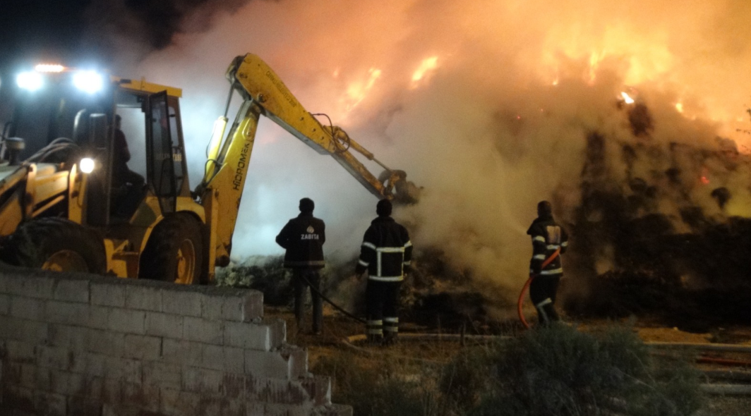 Yangın, akşam saatlerinde belde merkezinde bir mandıranın yakınında meydana geldi. Muhittin Demirtaş’a ait yaklaşık 600 tonluk saman balyalarında henüz belirlenemeyen bir nedenle yangın çıktı. Yangın, kısa sürede büyüyerek tüm saman balyalarını sardı. İhbar üzerine bölgeye jandarma, AFAD, MKE ile çevre ilçe belediyelerine ait itfaiye ve iş makineleri sevk edildi. Yaklaşık 3 saattir süren yangını söndürme çalışmaları devam ediyor.