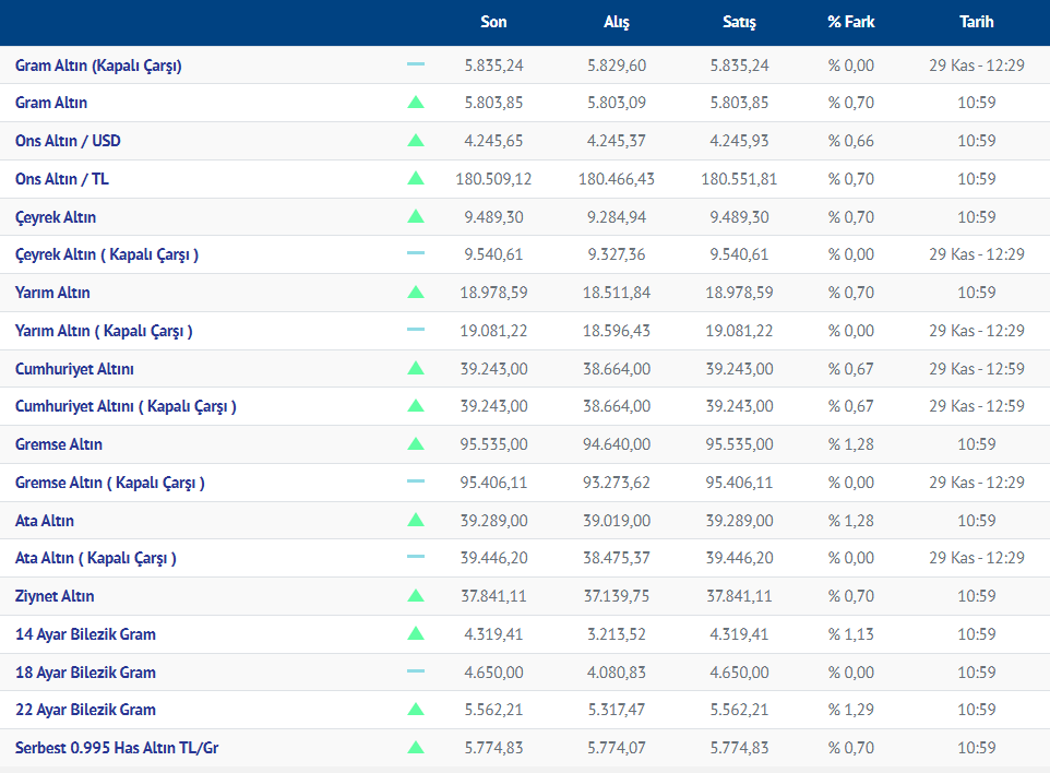 Gram altın yeni güne yükselişle başladı. Güne yükselişle başlayan gram altının bugünkü (01.12.2025) fiyatı, Kırıkkale Kuyumcular Derneğinin verilerine göre, gram altın 5803 liradan işlem görüyor.