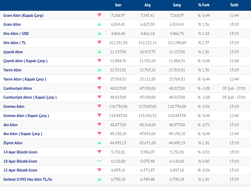 Gram altın yeni güne düşüşle başladı. Güne düşüşle başlayan gram altının bugünkü (06.02.2026) fiyatı, Kırıkkale Kuyumcular Derneğinin verilerine göre, gram altın 6824 liradan işlem görüyor.