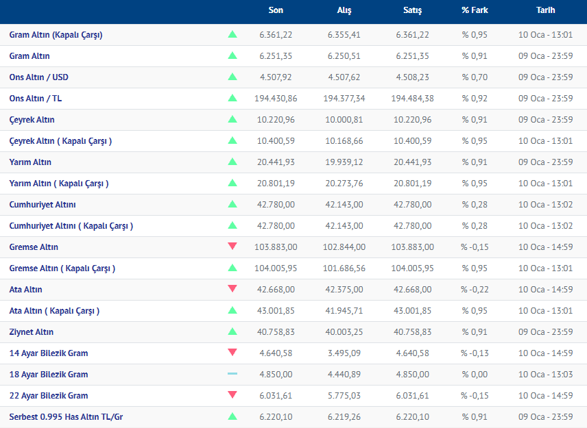 Gram altın yeni güne düşüşle başladı. Güne düşüşle başlayan gram altının bugünkü (11.01.2026) fiyatı, Kırıkkale Kuyumcular Derneğinin verilerine göre, gram altın 6251 liradan işlem görüyor.