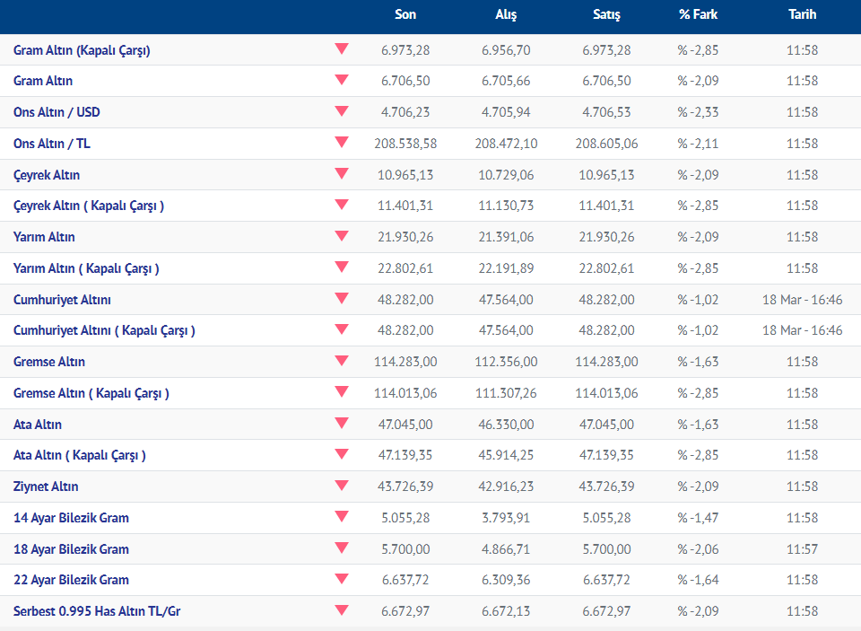 Gram altın yeni güne yükselişle başladı. Güne yükselişle başlayan gram altının bugünkü (19.03.2026) fiyatı, Kırıkkale Kuyumcular Derneğinin verilerine göre, gram altın 6706 liradan işlem görüyor.