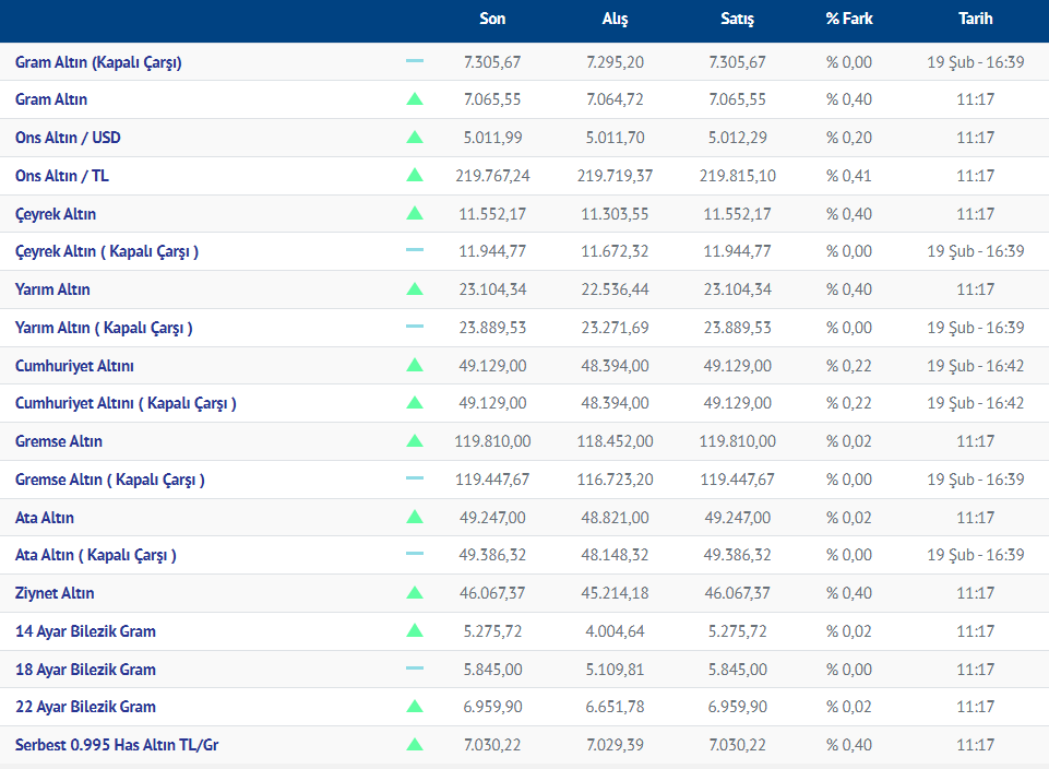 Gram altın yeni güne yükselişle başladı. Güne yükselişle başlayan gram altının bugünkü (20.02.2026) fiyatı, Kırıkkale Kuyumcular Derneğinin verilerine göre, gram altın 7065 liradan işlem görüyor.
