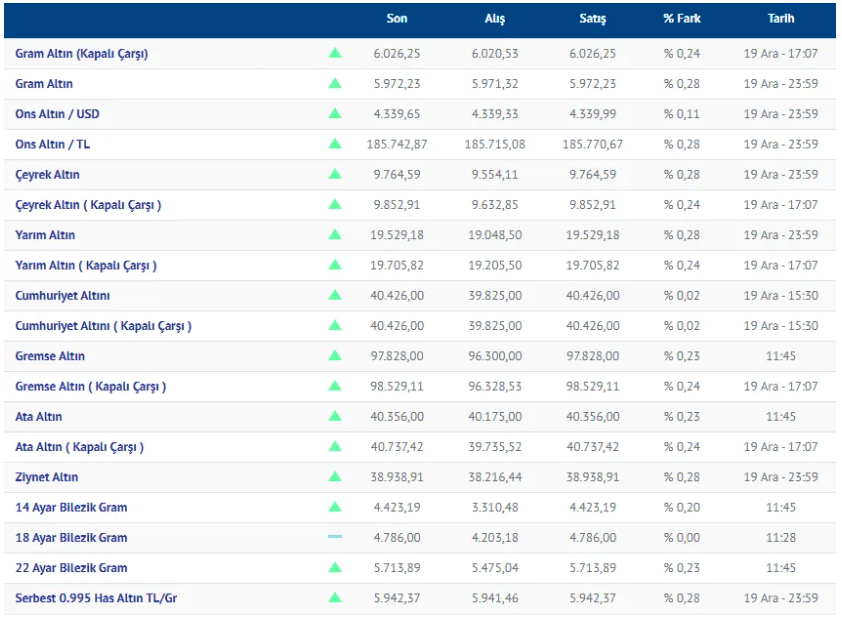 Gram altın, Cuma gününü yükselişle tamamlamıştı. Haftanın son iş gününe düşüşle başlayan altın, güne düşüşle devam etti. Haftayı yükselişle tamamlayan Altının (21.12.2025) fiyatı, Kırıkkale Kuyumcular Derneğinin verilerine göre, gram altın 5,972 liradan işlem gördü. Altının yeni haftaya düşüşle başlaması bekleniyor.