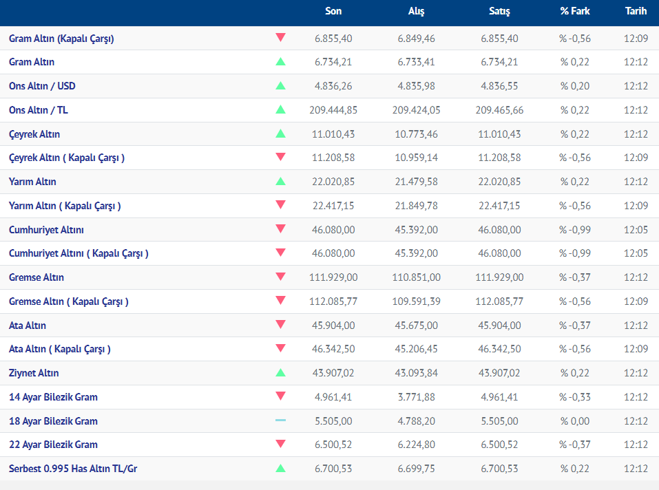 Gram altın yeni güne yükselişle başladı. Güne yükselişle başlayan gram altının bugünkü (22.01.2026) fiyatı, Kırıkkale Kuyumcular Derneğinin verilerine göre, gram altın 6734 liradan işlem görüyor.
