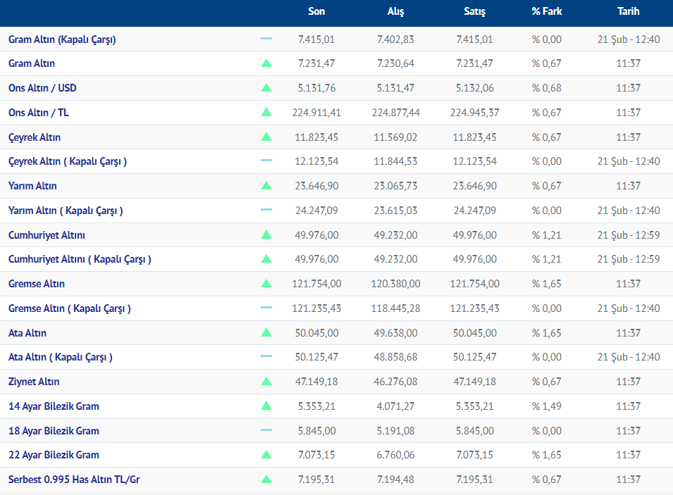 Gram altın dün günü yükselişle tamamlamıştı. Haftanın son iş gününe yükselişle başlayan altın, güne yükselişle devam etti. Haftayı yükselişle tamamlayan ve hafta sonu piyasalarda hareketlilik yaşanmayan Altının (23.02.2026) fiyatı, Kırıkkale Kuyumcular Derneğinin verilerine göre, gram altın 7.231 liradan işlem gördü.