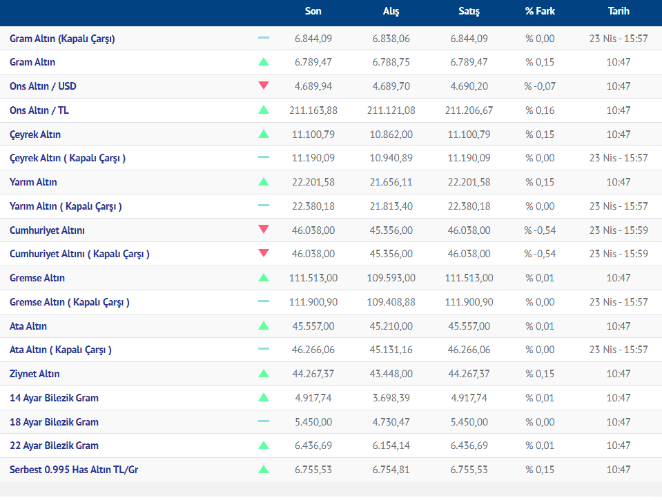 Gram altın yeni güne düşüşle başladı. Güne düşüşle başlayan gram altının bugünkü (24.04.2026) fiyatı, Kırıkkale Kuyumcular Derneğinin verilerine göre, gram altın 6789 liradan işlem görüyor.