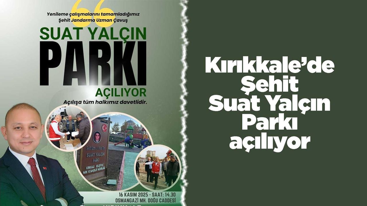 Kırıkkale Belediyesi, şehirdeki yeşil alan çalışmalarına bir yenisini daha ekledi. Belediye Başkanı Ahmet Önal, Osman Gazi Mahallesi’nde yapımı tamamlanan Şehit Suat Yalçın Parkının açılışının 16 Kasım Pazar günü saat 14.30’da gerçekleştirileceğini duyurdu.