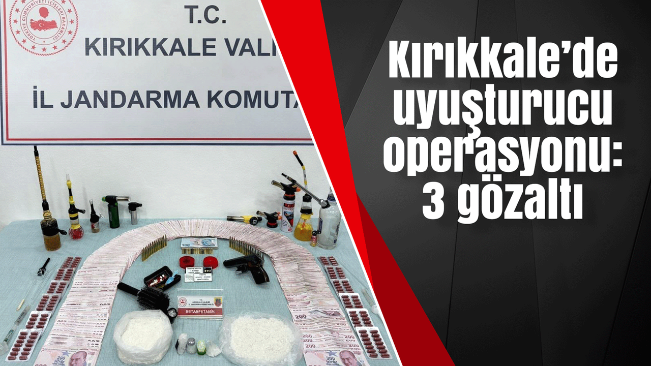 Kırıkkale Cumhuriyet Başsavcılığı talimatıyla İl Jandarma Komutanlığı ekipleri, uyuşturucu ticareti yaptığı belirlenen şahıslara yönelik çalışma başlattı. Yapılan teknik ve fiziki takip sonucunda Ö.Y. (32), N.Ö. (31) ve B.U. (34) isimli şüphelilerin uyuşturucu madde sattığı tespit edildi. Ekipler, belirlenen adreslere eş zamanlı operasyon düzenledi. Evlerde yapılan aramalarda 830 gram metamfetamin, 178 adet sentetik ecza hap, 3 gram esrar, 15 adet uyuşturucu kullanma aparatı, 1 adet tabanca, 43 adet fişek ile uyuşturucu ticaretinden elde edildiği değerlendirilen 190 bin lira ele geçirildi. Operasyonda gözaltına alınan 3 şüpheli hakkında adli işlem başlatıldı.