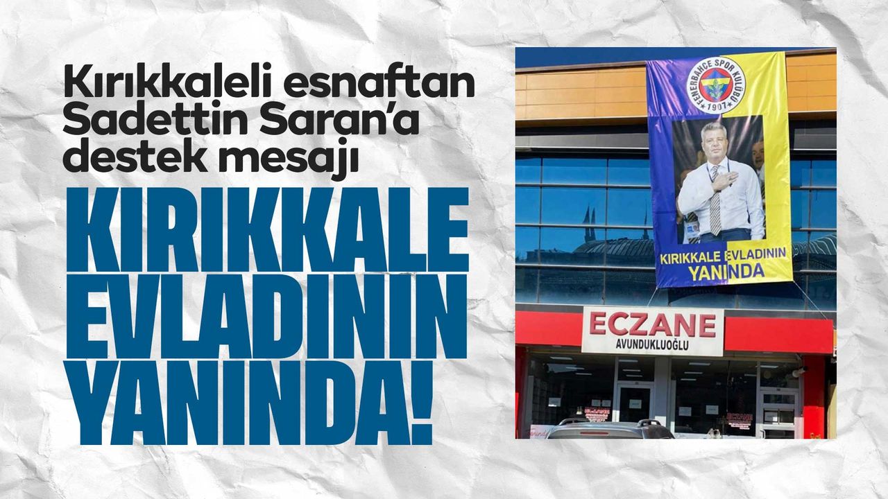 Kırıkkaleli esnaflar da sessiz kalmadı. Kırıkkale’de eczacılık yapan Avundukluoğlu Eczanesi firma sahibi Alparslan Avundukluoğlu, eczanenin bulunduğu binaya Sadettin Saran’ın görselinin yer aldığı ve üzerinde ‘Kırıkkale, evladının yanında’ yazan bir pankart astı. Pankart kısa sürede büyük beğeni topladı.