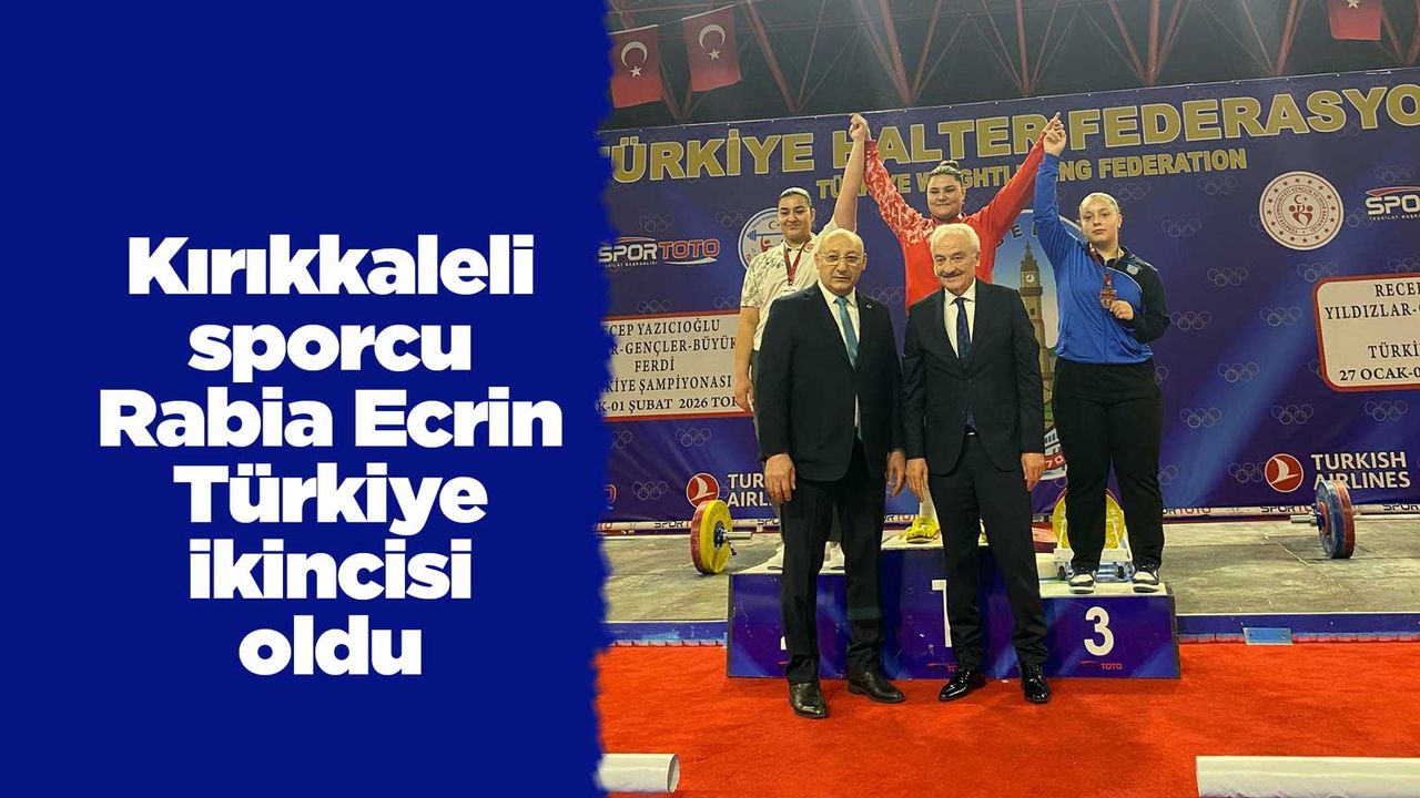 Kırıkkale Gençlik ve Spor İl Müdürlüğü’nün paylaştığı bilgilere göre, 27 Ocak – 1 Şubat tarihleri arasında düzenlenen Recep Yazıcıoğlu Yıldızlar–Gençler–Büyükler Ferdi Türkiye Şampiyonası’nda Kırıkkaleli sporcu Rabia Ecrin Kurtoğlu önemli bir başarı elde etti. Şampiyonada podyuma çıkan Kurtoğlu, koparmada 83 kilogram, silkmede 110 kilogram kaldırarak toplamda 193 kiloluk dereceye ulaştı. Başarılı sporcu bu sonuçlarla Türkiye ikincisi olmayı başardı. Gençlik ve Spor İl Müdürlüğü tarafından yapılan paylaşımda, elde edilen derecenin gurur verici olduğu belirtilerek Rabia Ecrin Kurtoğlu ve emeği geçen antrenörleri tebrik edildi. Açıklamada ayrıca sporcunun başarılarının devamı temennisinde bulunuldu.