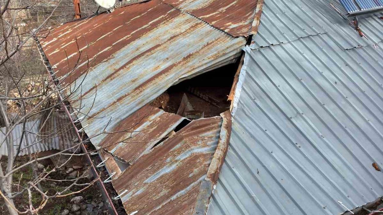 Konya'nın Bozkır ilçesinde dağdan kopan kaya parçası çatıyı delip evin damına düştü. Olayda kimsenin bulunmadığı evde maddi hasar meydana geldi.
