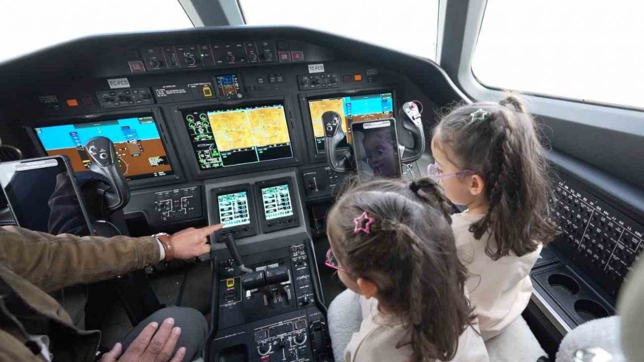 Ziyaretin ardından minik kardeşler, havalimanında unutulmaz bir gün yaşadı. Kokpiti inceleyen ikizler uçakları da yakından izleme ve tanıma fırsatı buldu.