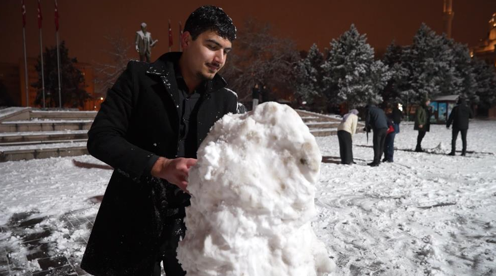 Kayra Kılınç ise, "Sınavdan çıktık, deneme çözüyorduk. Kar yağdığını görünce meydana gelip biraz oynayalım dedik. Eğleniyoruz, biraz soğuk ama gayet güzel" ifadelerini kullandı.