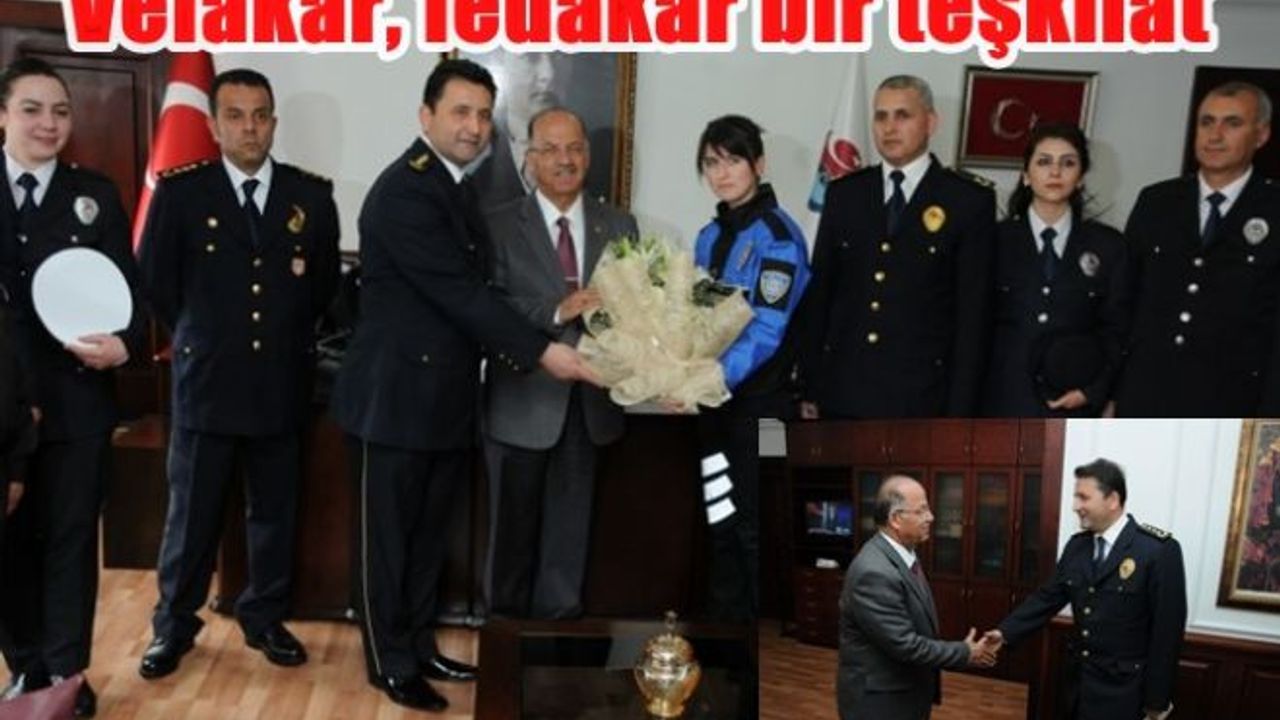 Polis Teşkilatı'nın 169. Kuruluş Yıldönümünü kutlama etkinlikleri devam ediyor. Emniyet Müdürü Hasan Onar ve emniyet çalışanları dün Vali Ali Kolat'ı makamında ziyaret ederek Polis Haftası etkinliklerine davet ettiler.
