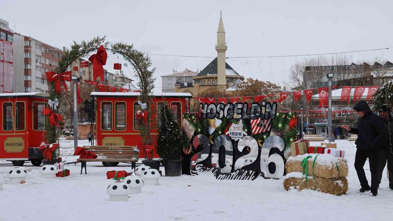 KIRŞEHİR (İHA) - Kırşehir'de yeni yılın ilk gününde etkili olan soğuk hava nedeniyle Cacabey Meydanı boş kaldı. Kentin simgelerinden Cacabey Medresesi ve çevresinde ise oluşan manzara görsel şölen sundu.