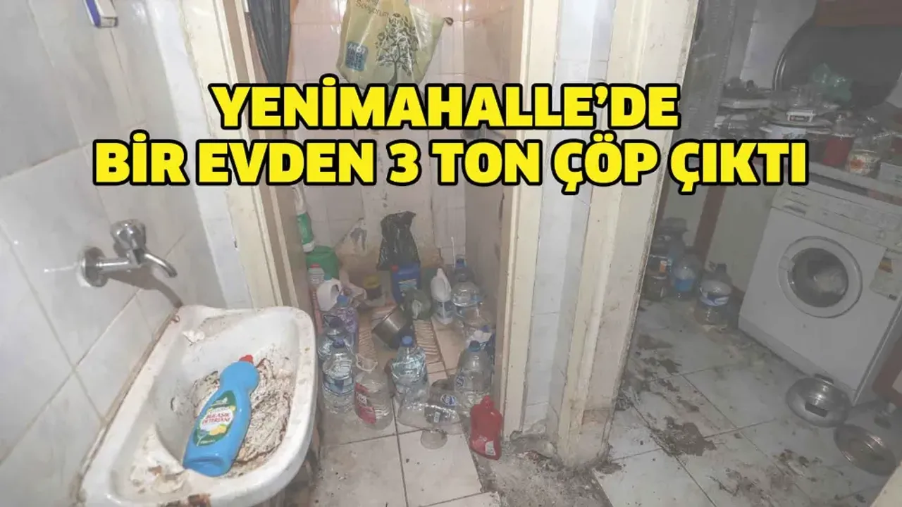Ekiplere evini temizletmek istemeyen Akbaş’ın evinden 3 ton çöp ve 20 bin TL para çıktı.