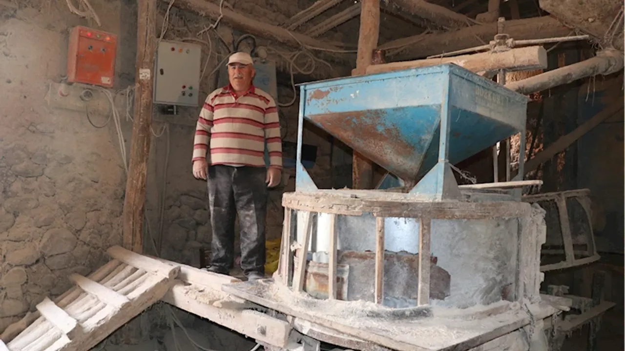 YOZGAT (AA) - Yozgat'ın Çadırardıç köyünde 59 yaşındaki Şükrü Şahiner, babasından kalan 49 yıllık taş değirmende tam buğday unu üretiyor.