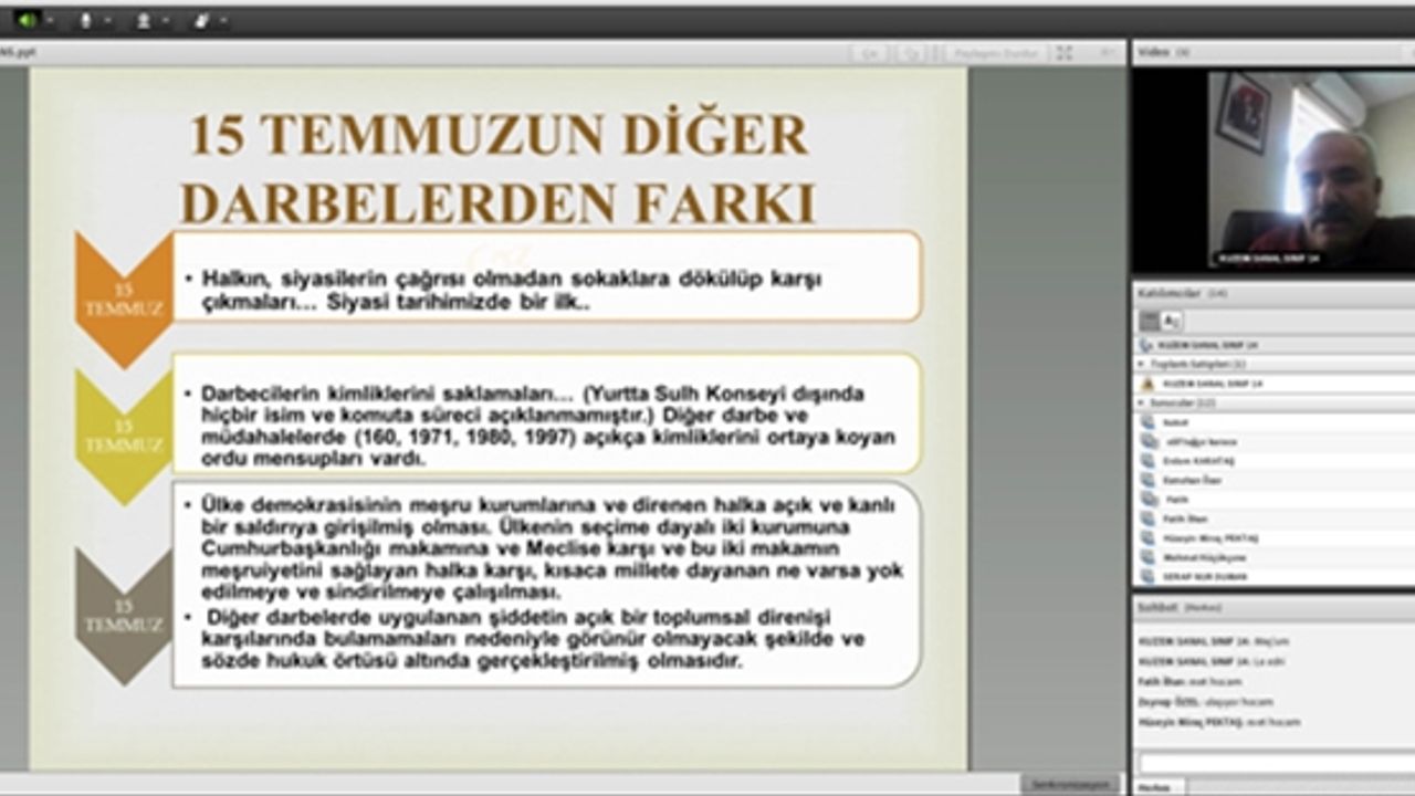 15 Temmuz darbe girişiminin, halkımızın darbe girişimine canı pahasına toplumsal direniş göstermesi nedeniyle siyasi tarihimizde bir ilk olduğunu belirten Doç. Dr. Salim Pilav, darbecilerin ülkemiz demokrasisinin meşru kurumlarına ve halkımıza yönelik kanlı bir saldırıya giriştiğini, ülkenin seçime dayalı iki kurumu olan Cumhurbaşkanlığı´nın ve Meclis´in, bu iki kurumun meşruiyetini sağlayan halk iradesinin yok edilmeye ve sindirilmeye çalışıldığını ifade etti. Doç. Dr. Salim Pilav, 15 Temmuz darbe girişimine karşı Milletimizin kahramanca mücadele etmesi ve darbecileri mağlup etmesinin dost ve düşman herkese İstiklal-İstikbal söz konusu ise milletimizin tek yürek olduğunu, ülkemizin baskılara, darbelere boyun eğmeyecek bir yapıda olduğunu gösterdiğini söyledi. Korku imparatorluğu olan FETÖ´nün sonunu getiren 15 Temmuz darbe girişimi sonrasında şeffaf olmayan, gizliliği esas alan yapıların tehlikesini, Batı´nın demokrasiye ve halk iradesine kendi menfaatlerine göre baktığı gerçeğinin net bir şekilde gördüğümüzü belirtti. Haber: Ersin Atasayar