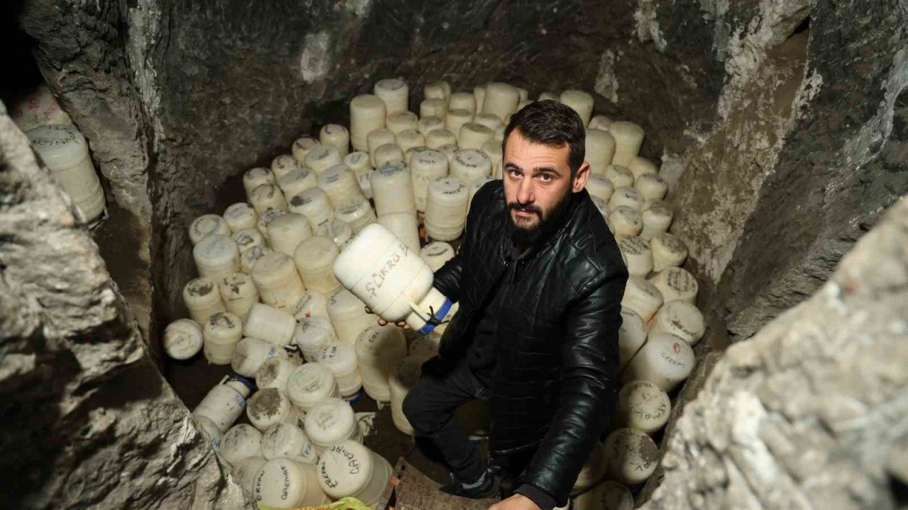 Sivas’ın Zara ilçesinde köylülerin ürettiği yöresel peynirler, ‘peynir oteli’ olarak bilinen kaya mağaralarında yaklaşık 6 ay bekletildikten sonra sahiplerine teslim ediliyor.