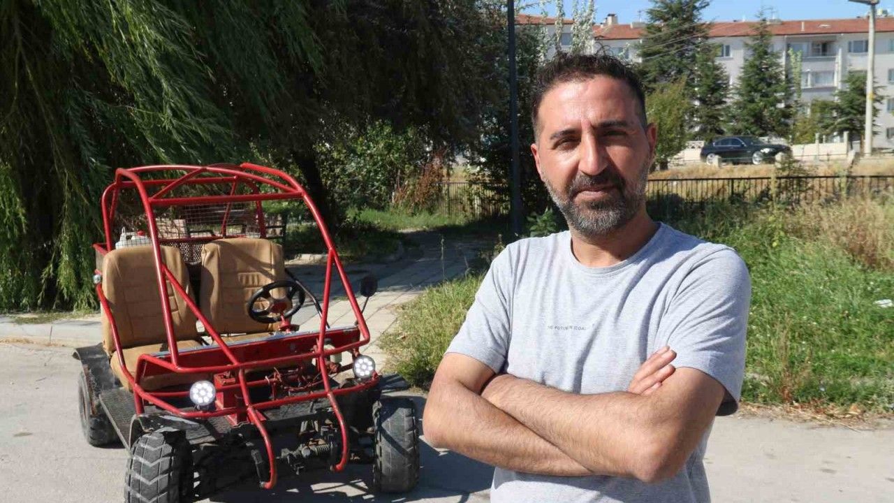 Eskişehir’de yaşayan 38 yaşındaki Fırat Eyüpoğlu bir araç yapmak için karar aldı. Bu kararı sonrası ön çalışma ve planlama yapan Eyüpoğlu, hurdacılardan topladığı malzemelerle 28 gibi kısa bir sürede aracını yaptı. İki kişilik ve otomatik vites olan 360 kilogram ağırlığındaki araç, 800 kilogram ağırlıkla 370 kilometreyi 5 litre benzinle kat etmeyi başardı. Motoru dahil tüm parçalarını hurdacıdan toplayan Fırat Eyüpoğlu, aracını toplamda 20 bin TL’ye mal etti. Aracını hem asfaltta hem de arazide gidebilecek şekilde tasarlayan Eyüpoğlu, onunla kampa gitmeyi planlıyor. Aracının oldukça dikkat çektiğini belirten Eyüpoğlu, 300 ile 400 bin TL bandında gelen teklifleri ise düşünmeden reddettiğini belirtti.