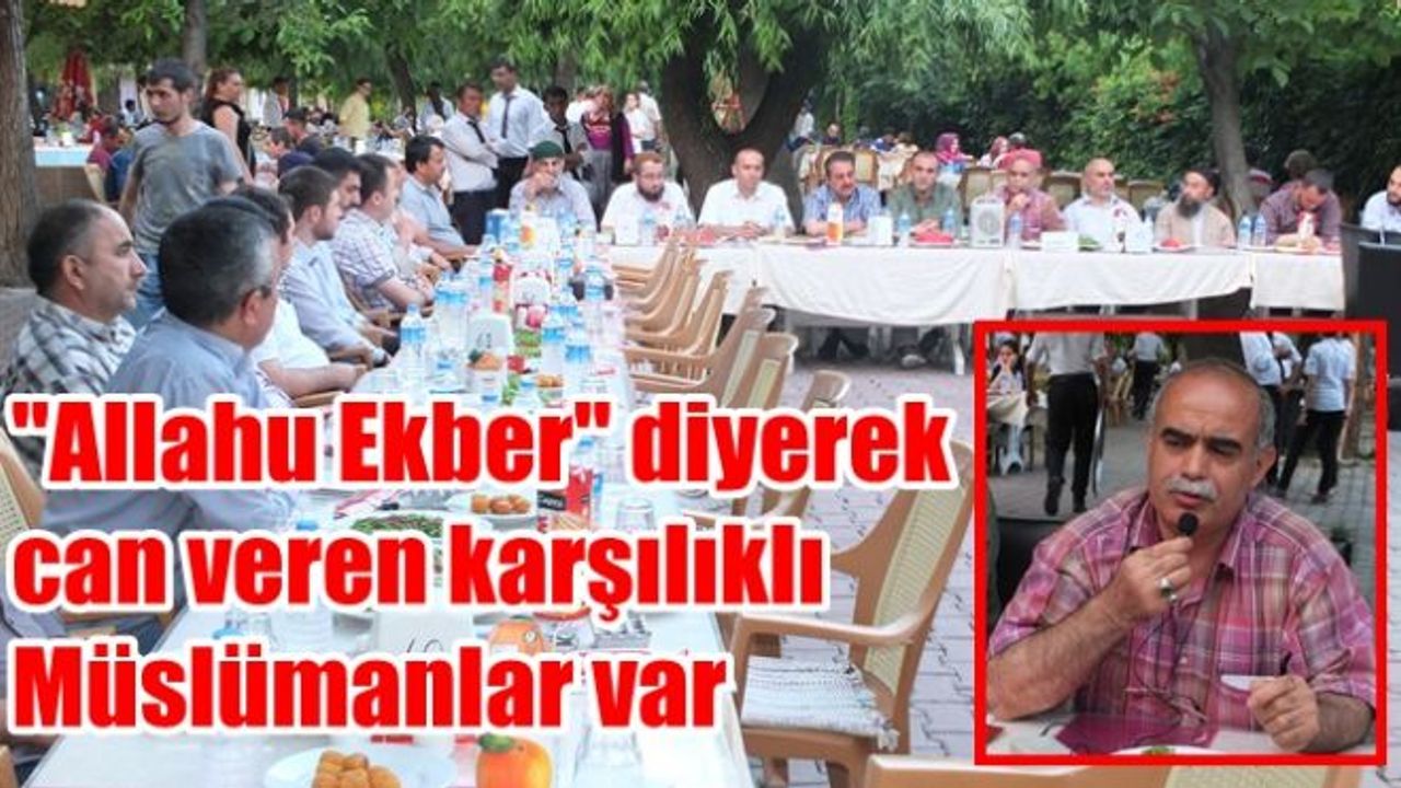 İftar yemeği öncesi bir açıklama yapan Dosteller Derneği Başkanı Yakup Utku bir çok dernek ve eğitim vakıfı ile ilim irşat işleri yanı sıra yardım faaliyetleri yaptıkların söyledi. En son olarak tüm derneklerin bir araya gelerek Suriye'ye yardım yaptıklarını belirterek 'Dünyanın neresinde olursa olsun, çekik gözlü olsun, kahverengi derili olsun herhangi bir insanın, özellikle bir çocuğun mağduriyeti, mazlumiyeti hepimizi incitir. Hemcins olduğumuz için bu böyledir. Hemdin olduğumuz için de dünyanın neresinde olursa olsun herhangi bir müslümanın zulüm görmesi, mağdur ve mazlum duruma düşmesi yine bir dindaş olarak hepimizi üzüyor. Fakat, dünya ölçeğinde gerçekten hepimizi tarif edilmez bir şekilde üzen ve bir mağduriyet var. Ne elimiz yetiyor, ne kolumuz yetiyor. Dua etmekten başka çoğumuzun yapabileceği pek bir şey yok. Hani hemcins olarak diğer insanların, mazlum ve mağdur olan insanların elemleri ile müteellim olduğumuz gibi, dindaşlarımızın elemleri ile de gerçekten müteellimiz, kederleniyoruz. En acı taraf şu ki, aramızda birlik ve beraberliğe vesile olacak pek çok hakikat varken, mesela Allah'ımız bir, Kitabımız bir, Peygamberimiz bir, Kıblemiz bir, böyle olduğu halde maalesef Allahu Ekber diyerek kurşun sıkıyor, Allahu Ekber diyerek can veren karşılıklı müslümanlar var. Bu bizi derinden üzüyor. Fakat geniş dairedeki olaylara hiç birimizin gücü ve eli yetmiyor. Hepimiz Kırıkkale'nin yerel dernekleri olarak, Kırıkkalemizde, Kırıkkalelilerimize neler yapabiliriz bunun endişesiyle yıllardır hepimiz gerek irşad, gerek eğitim, gerekse yardım olmak üzere elimizden geleni yapmaya çalışıyoruz. Allah'a şükür ki hepimizin bir ortak paydası var. Hepimiz Ehl-i Sünnet V'el-Cemaat'iz. Farklı mezheplerimiz, tarikatlarımız, vakıflarımız olsa bile ortak paydamız pek çok. Birlik ve beraberlik içerisinde hareket etmemiz için pek çok neden var. 'şeklinde konuştu.