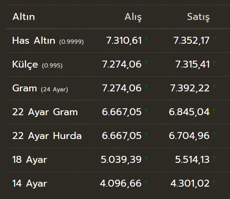Yurt İçinde Altın Fiyatları