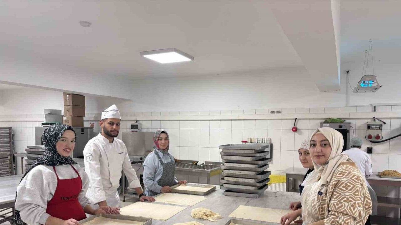 Ankara Pursaklar Belediyesi’ne bağlı Hanım Evinde eğitim alan Pastacılık Sınıfı kursiyerleri, baklava ve böreğin yapımını imalathanede birebir uygulamayla deneyimledi.