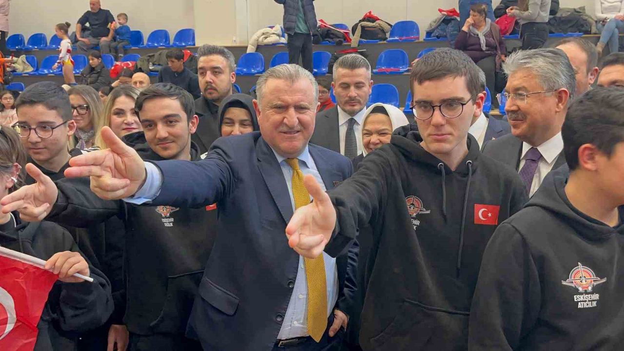 Eskişehir'de Yunus Emre Kapalı Spor Salonu açılışına katılan Gençlik ve Spor Bakanı Osman Aşkın Bak, tören sonrasında gençler ile birikte basketbol ve voleybol oynadı.