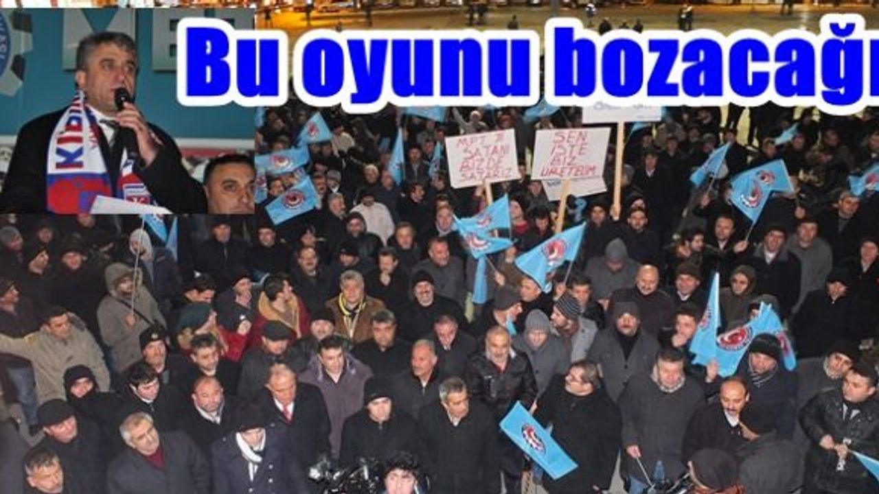 Oldukça soğuk bir havada gerçekleşen eylemde bir konuşma yapan Esnaf Odaları birliği Başkanı Süleyman köstekli MKE'nin Kırıkkale için büyük önem arz ettiğini Silah fabrikasında yapılan Mili piyade tüfeğininde Kırıkkale işçisinin alın teri olduğunu söyledi. MKE'nin geçtiğimiz yıllarda yapılan yanlış politikalar nedeniyle bu duruma düştüğünü MKE'nin canlanması için çalışmalarında sürdüğünü söyledi. Köstekli2Şimdi görüyoruz ve duyuyoruz MPT için bir takım oyunlar oynanıyor. Bunlara dur demek için tüm esnaf odalarındaki arkadaşlarımızla buraya geldik. Biz MKE'nin esnaf açısından ne kadar önemli olduğunu bilen insanlarız. Sizler burada kazanıyor burada ki esnafa kazandırıyorsunuz. Bu yüzden sizlerin yapacağı her eyleme destek vereceğiz' ifadesini kullandı.