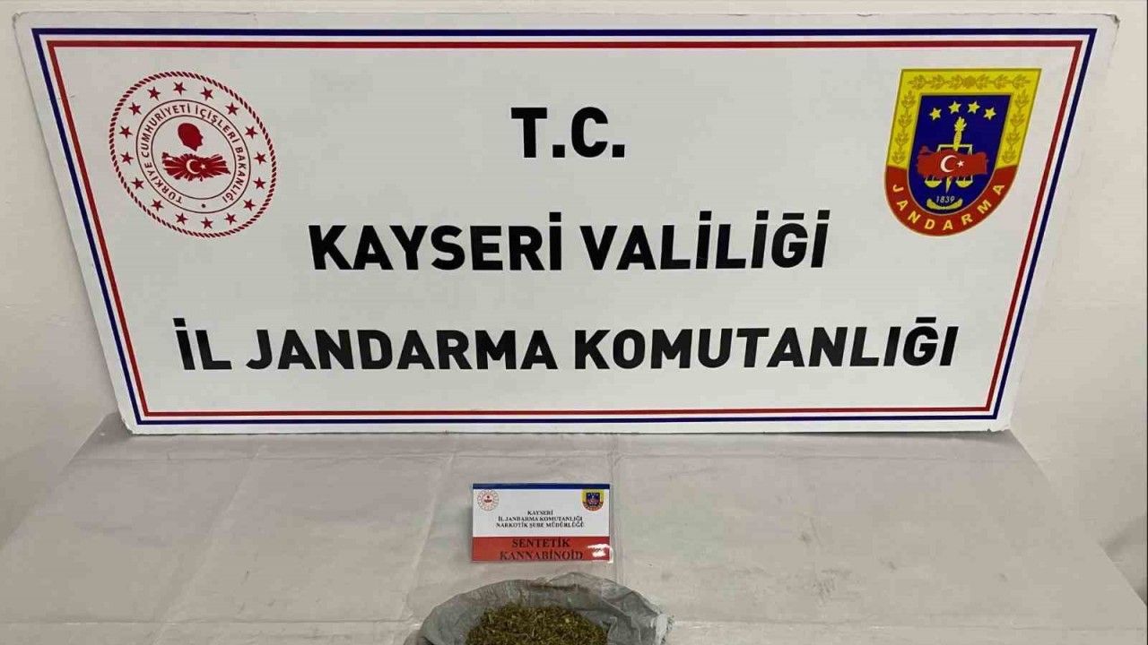 Kayseri’de jandarma ekipleri tarafından yapılan çalışmalarda; durdurulan bir şahsın üzerinden uyuşturucu madde çıktı.